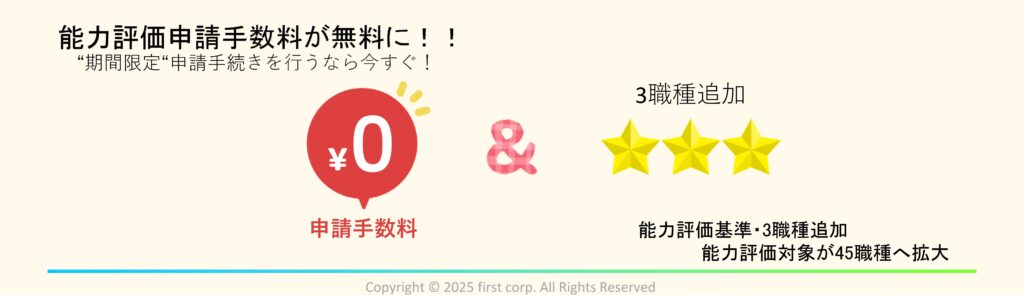 【期間限定】能力評価申請手数料・全額支援キャンペーン