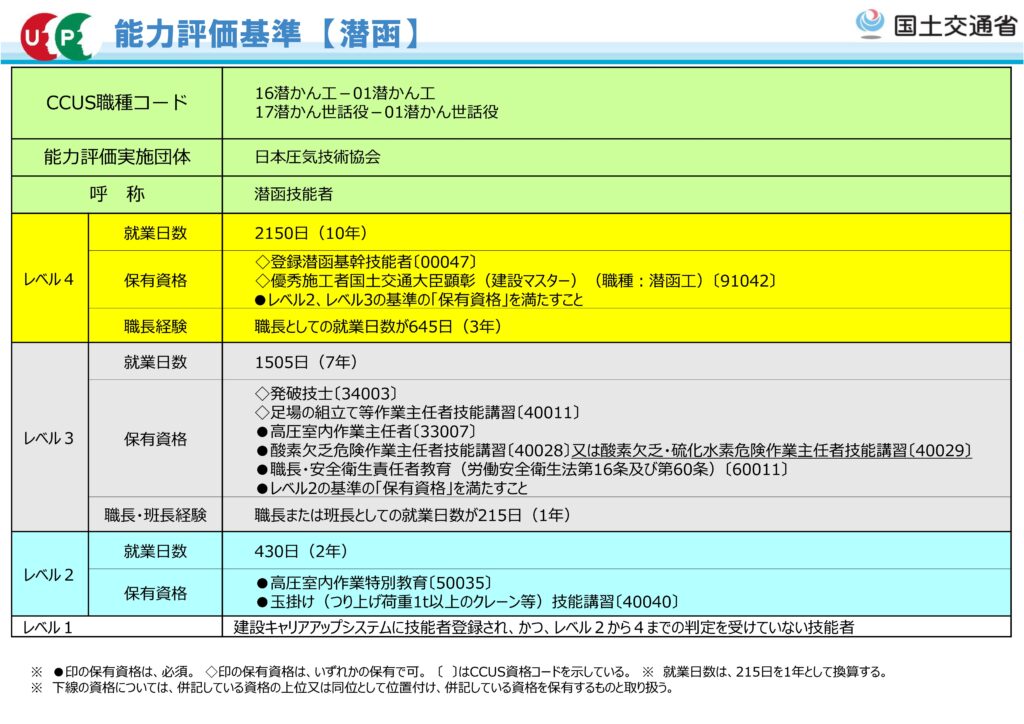 ニューマチックケーソン工法などを扱う潜函施工の専門職の能力評価が2025年6月27日より追加。