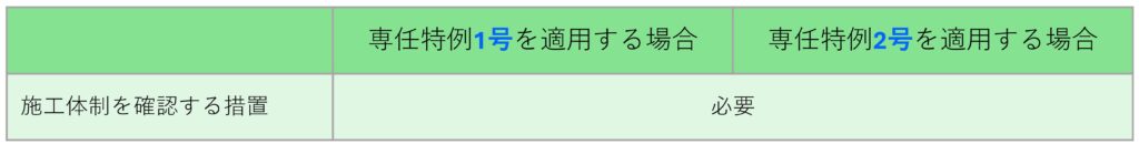 専任特例2号を適用の場合 | 非専任(監理技術者を補佐する者を配置)