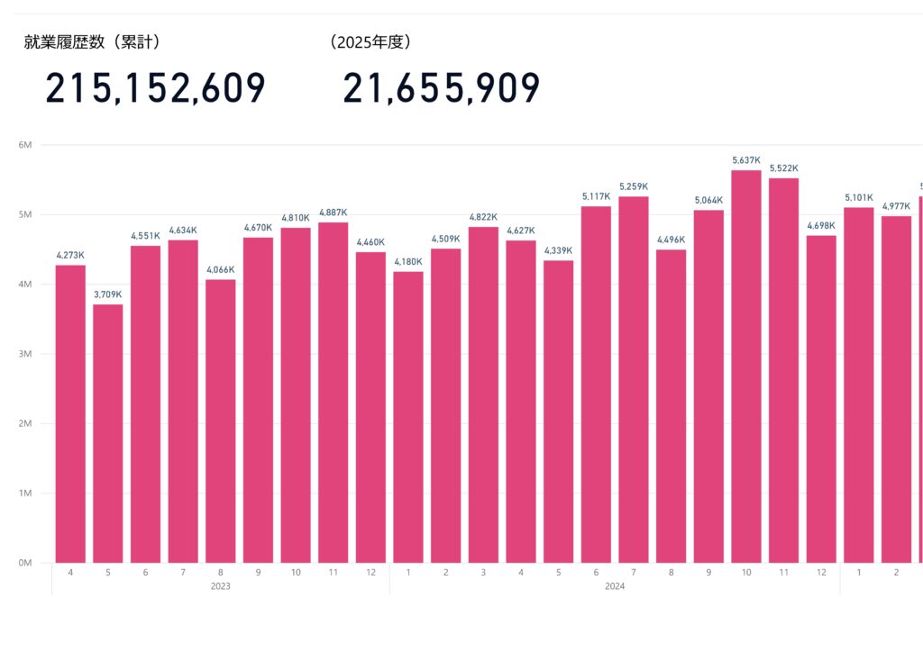 ▷就業履歴登録数 約2億回(215,152,609回)