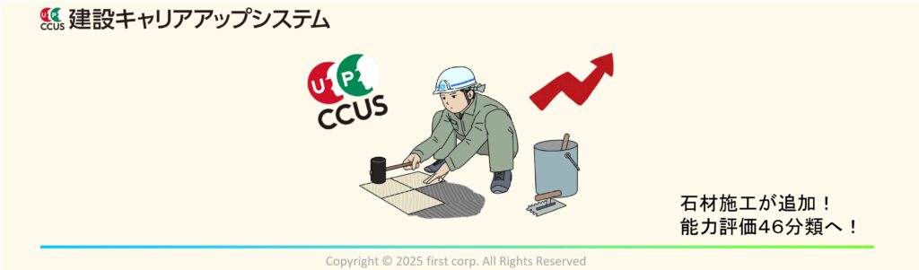 石材施工技能者はじめとする46職種にとって、CCUSのレベルアップは単なる資格取得ではありません。それは「自分の経験と技術が公的に認められる証」であり、将来的な賃金評価・現場配置・表彰・入札加点にもつながる重要なキャリアでありポートフォリオです。また、これから建設業界に入職する就業者の道しるべとなるキャリアパスを示してくれます。努力のロスをなくし、最短ルートを最小の力で合理的に実現可能です。これを機にご自身の技能レベルを見直し、もてる技能・知識・経験を能力評価申請し今あるべき姿を建設キャリアアップシステムに保証してもらいましょう。