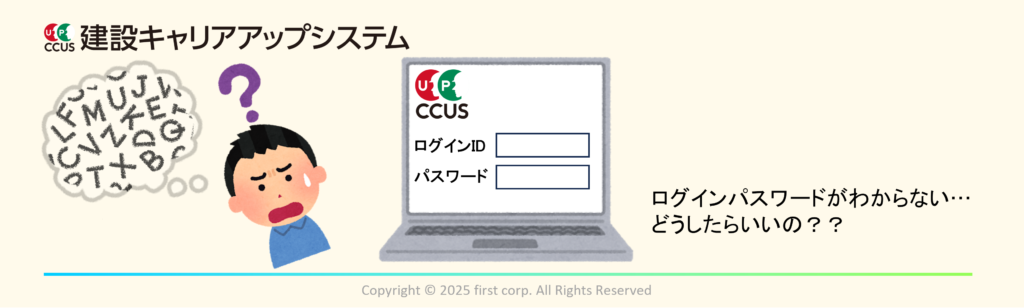 「建設キャリアアップシステム(CCUS)にログインしたいがパスワードがわからない」という場合、パスワードを確認する方法があるのかどうか?ということについてですが、